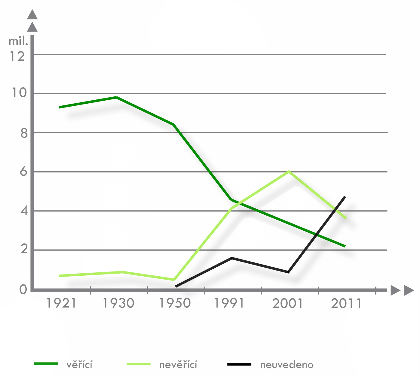 Vývoj počtu věřících v ČR